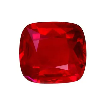 This is a ruby of pigeon's blood that is red in color. The ruby stone comes in a cushion shape and a brilliant cut. The ruby is sparkling and has a shiny appearance.