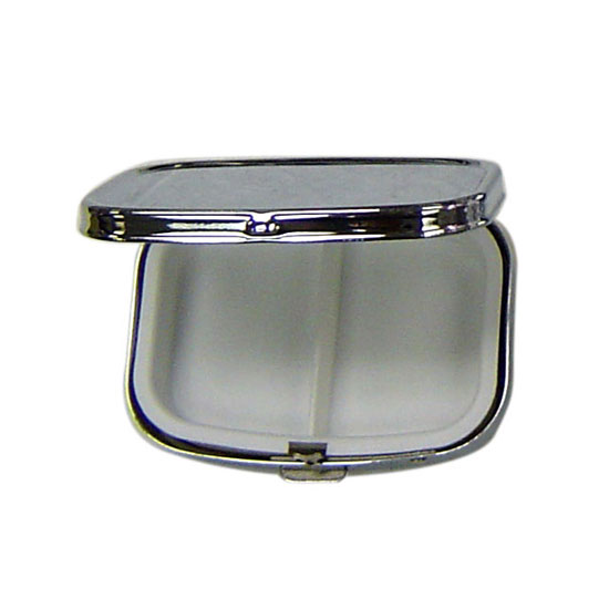 This is a pill box designed in a compact structure that is easy to put into your pocket. It features a robust and rugged housing for a long service life. This pillow box has a very glossy finish in silver.