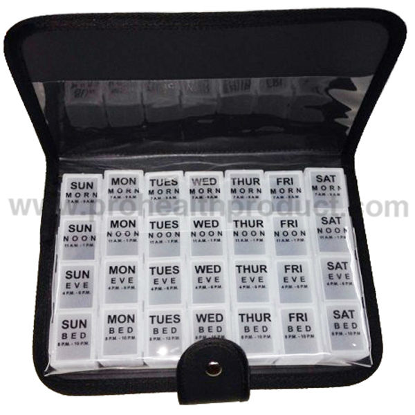 Printing on the lids of the pill box: can be in your language (SUN to SAT, MORN to BED)