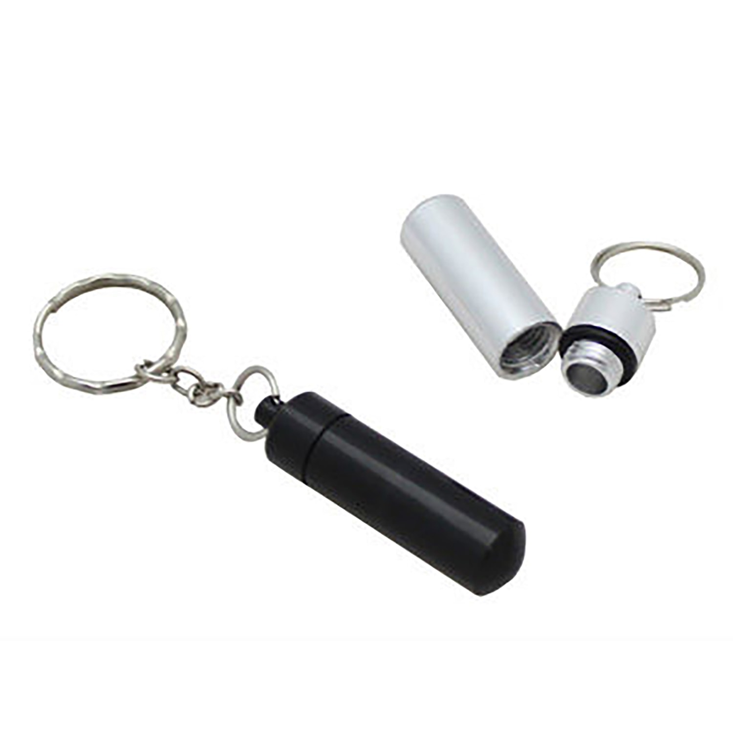 Aluminum pill bottle keychain (small capsule sized) includes the following features: