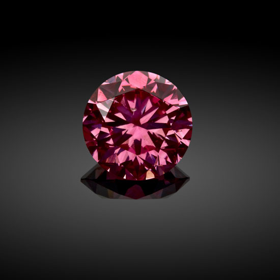 This round brilliant-cut diamond is exquisitely crafted for excellent radiance. It features a natural, fancy pink color with a purplish hue. This exceptional pink diamond is well-suited for assorted jewelry designs.