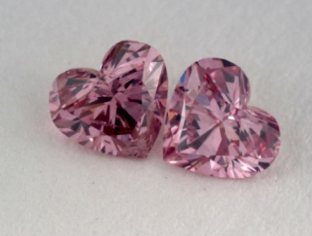 Pair 0.51 carat & 0.52carat Heart Shape Diamond Fancy Intense Purplish Pink diamond VS2 and SI1 clarity, GIA certified.