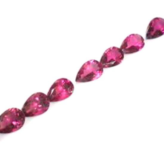 This is a pink tourmaline shining with a bright pink hue. It is shaped into a pear cut for additional sparkle. It is ideal for making bangles and earrings.