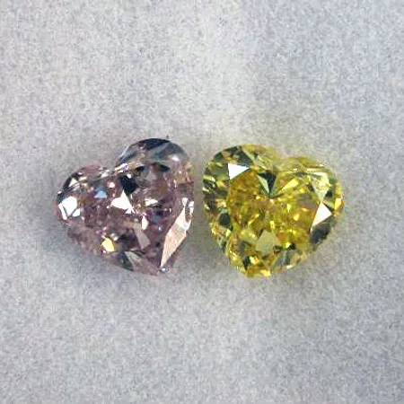 One is a vivid yellow, and the other a pink diamond.