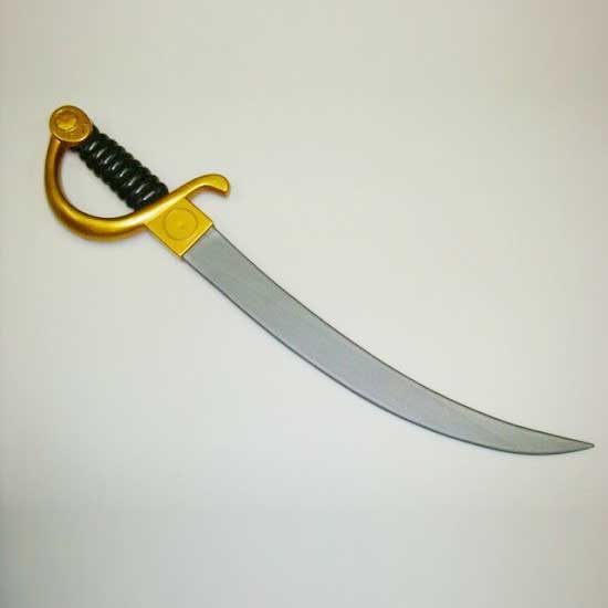 Displayed is a pirate sword made of high quality plastic for durability and safety. Designed with a silvery blade and a golden tang, this sword is an essential costume for pirate-themed role plays. This fun pirate sword is great for carnivals and parties.