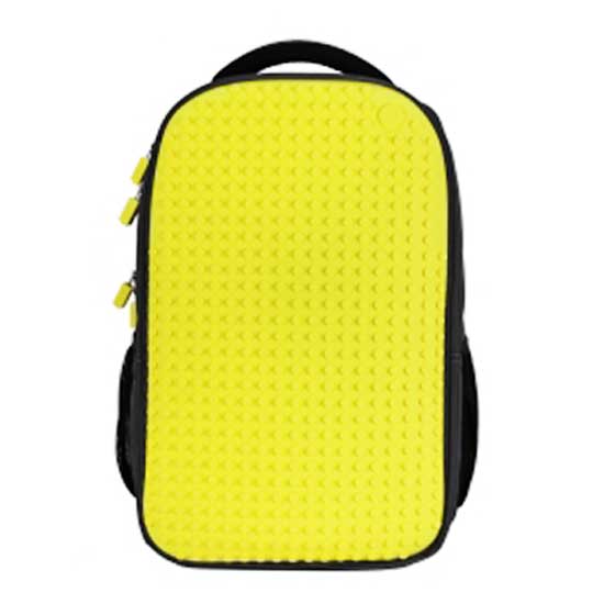 This business backpack features a yellow silicone pixel panel for you to put on own pixel puzzle design. The ergonomic backpack can distribute the weight evenly on your back. The back panel is made of mesh fabric for better breathability.