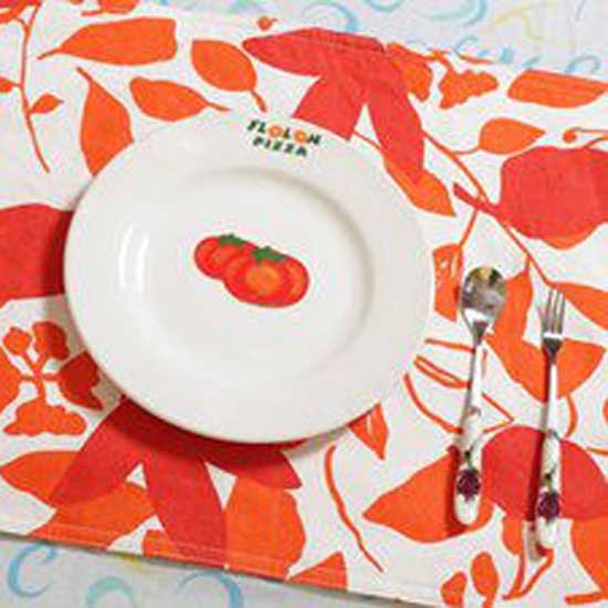 This placemat features reddish orange prints on the white surface. The high-quality mat is easy to wash and maintain. It is sturdily constructed for extended durability.