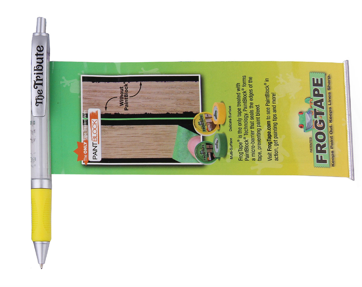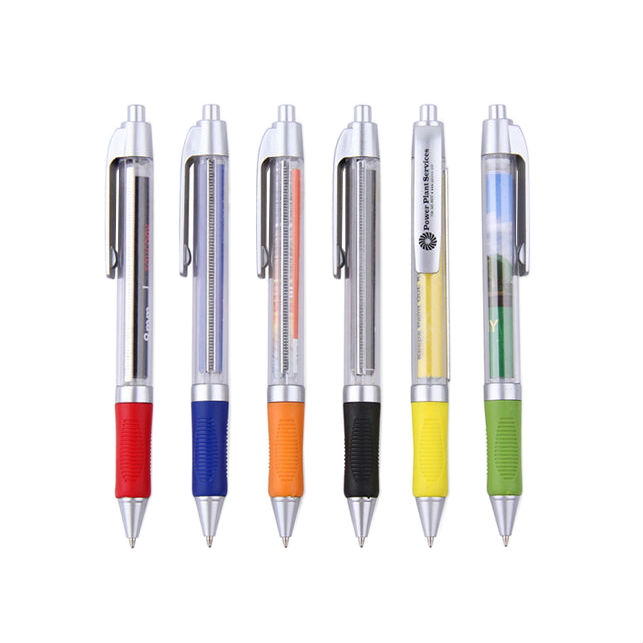 Description:plstic stylus pen with soft rubber grip and banner inside