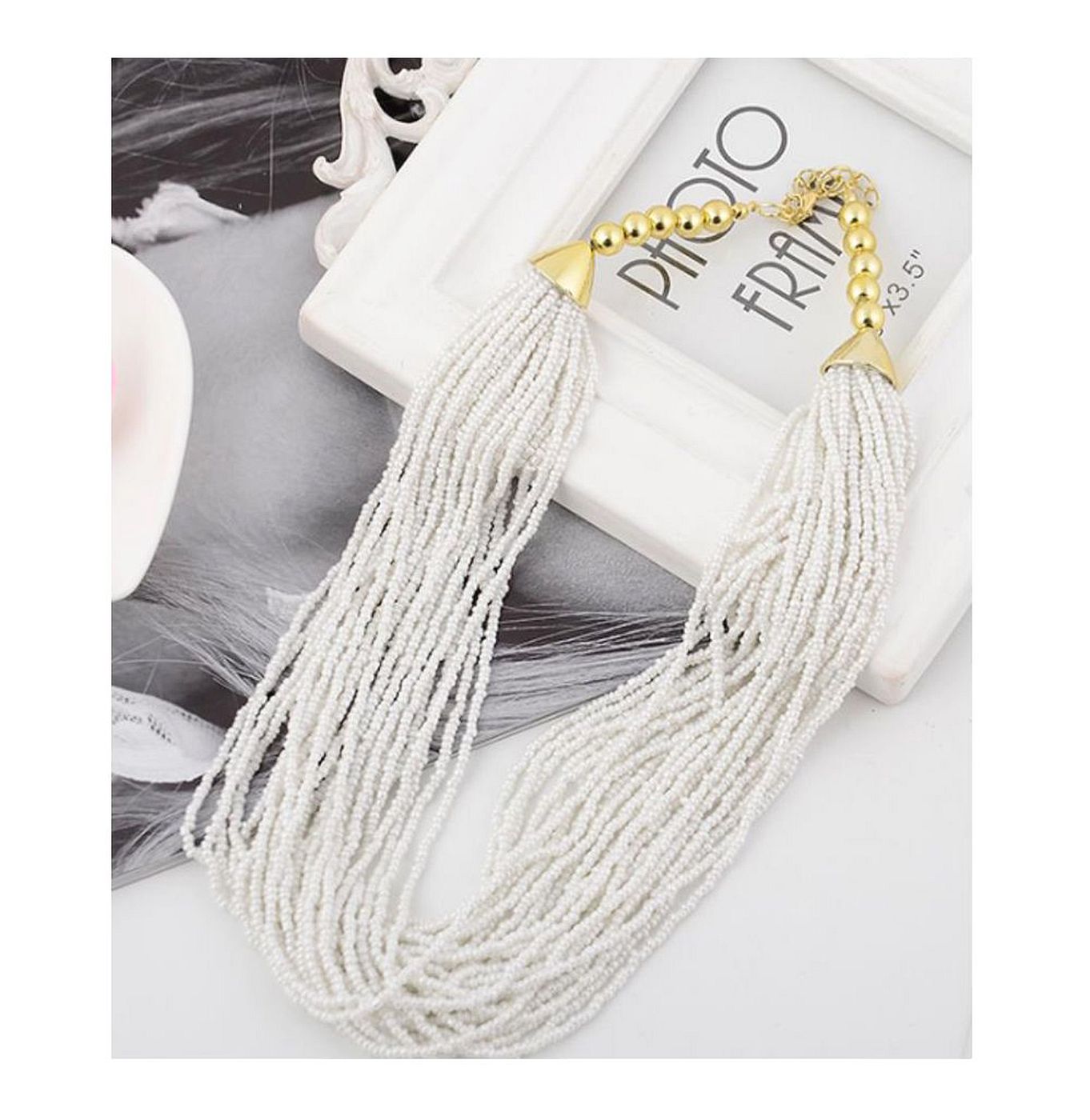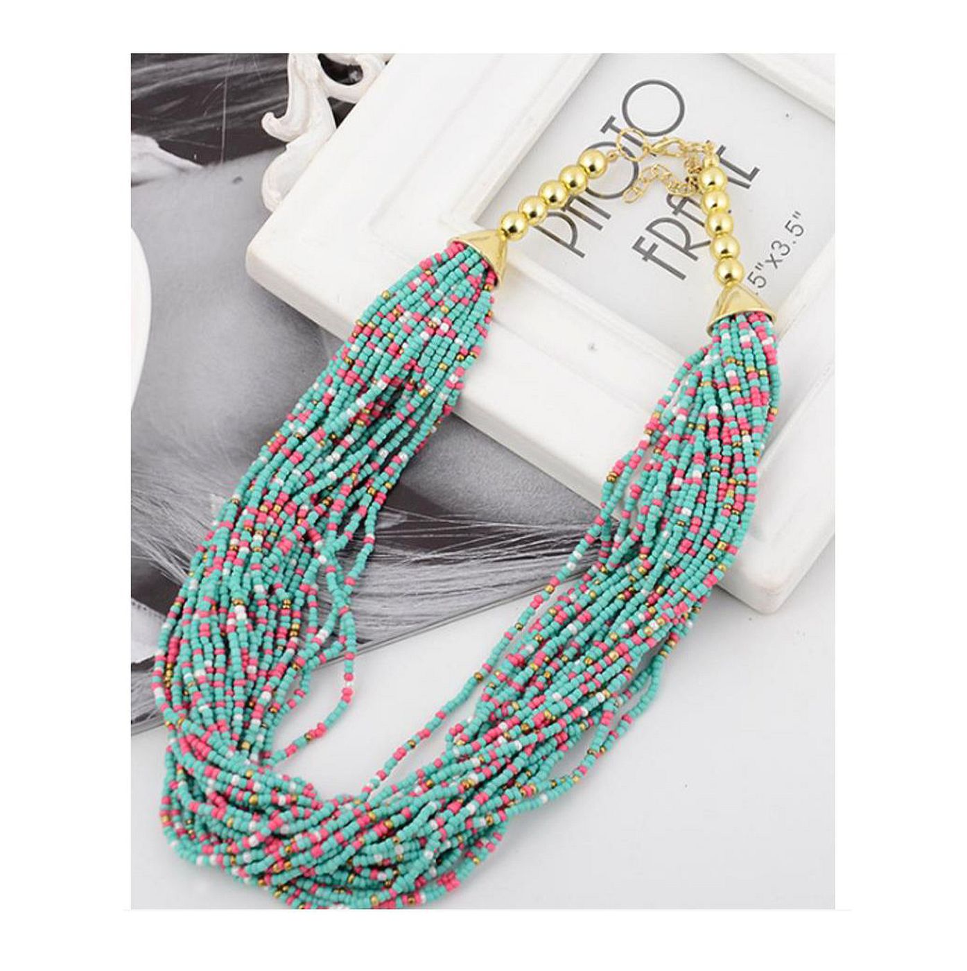 As shown is a high-fashion alloy parts jewelry plastic beads necklace.
