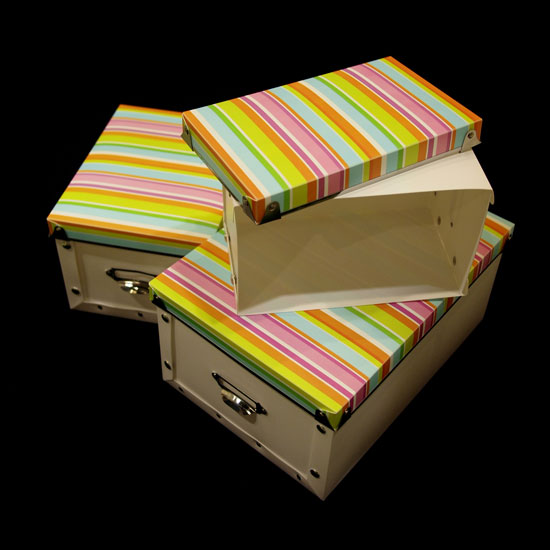 The displayed household plastic boxes come in bright white with a lid in assorted colors, lightening up your mood effortlessly. Each box is skillfully designed with a tag slot on the front for convenient identification. Store your sundry items in an organized way with these practical boxes.
