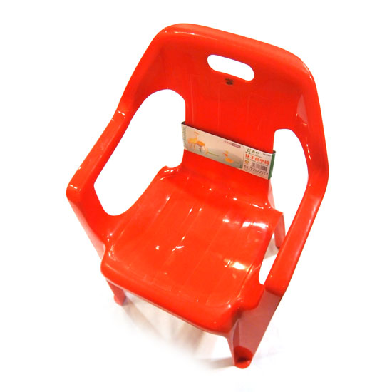 This outlined plastic chair is light in weight and versatile. The reddish orange tone showcases a vivid accent. This displayed plastic chair is suitable for home use.
