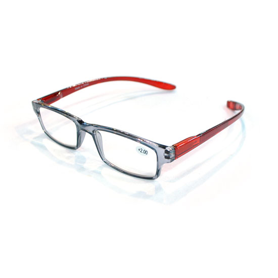 This pair of plastic eyeglasses comes in with a bi-color design. The black frame is joined by red temples for a contrasting effect. These fashionable eyeglasses are suitable for both men and women.