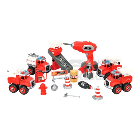 Wholesale plastic fire fighting diy truck toy with electric screw drill