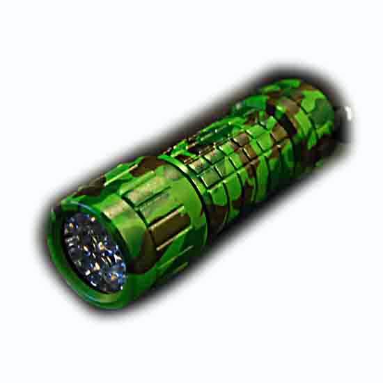 This flashlight boasts a plastic construction with rubber coating. It is powered by 9 LEDs for high-brightness illumination. The compact and lightweight design makes this flashlight ideal for convenient traveling.