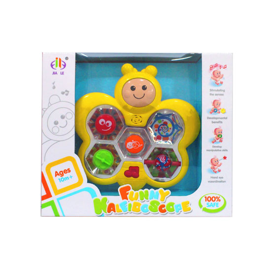 This is a toy kaleidoscope with a cute and lovely bee-shaped housing in yellow. It is made of quality plastic for durability. Let your little one have fun with this well-made toy.