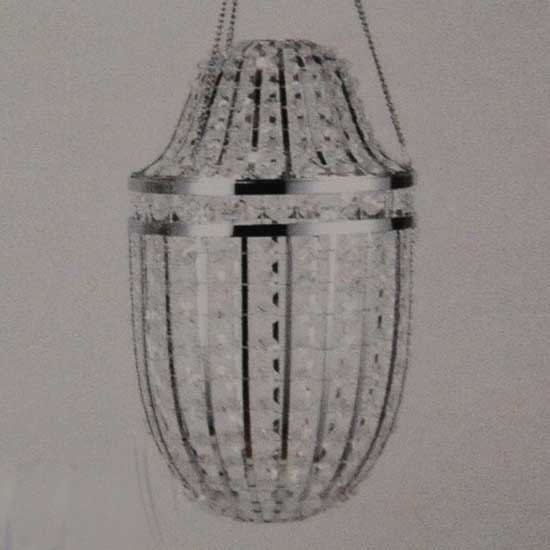 This pictured lampshade flaunts sturdy plastic construction. It is accented with chains of crystals for added classiness. This dainty crystal lampshade will surely add a refined accent to your lighting products.