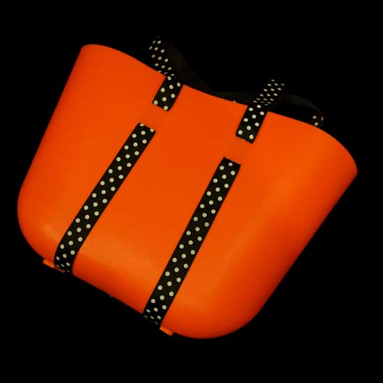 This bright orange shopping bag is accented with dotted fabric handles. Crafted of quality plastic, the shopping bag is waterproof and durable. It makes a great companion for your grocery shopping.
