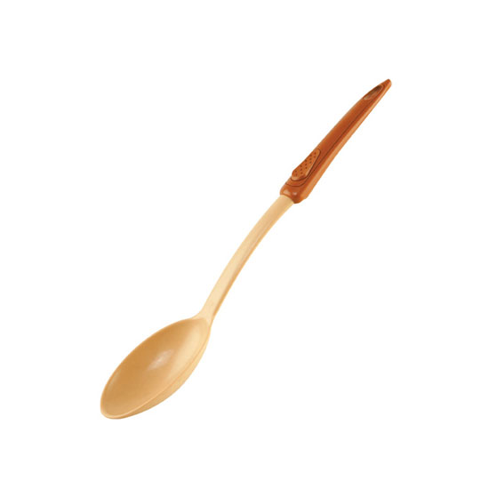 This is a plastic spoon that is designed with an ergonomic handle. It is certified to meet various safety standards. This plastic spoon is easy to clean and maintain.