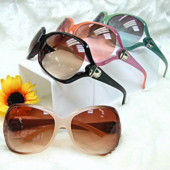 These sunglasses shield your eyes from the sun in style. They feature a big plastic frame with gradient colors. The polished hinges reflect a lustrous sheen for added glamour.