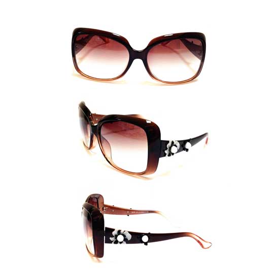 This is a pair of plastic sunglasses that features a full-rimmed frame and gradient lenses. The nose saddle bridge ensures ultimate wearing comfort. The floral trimmings on the temples make this pair of unique and attractive.