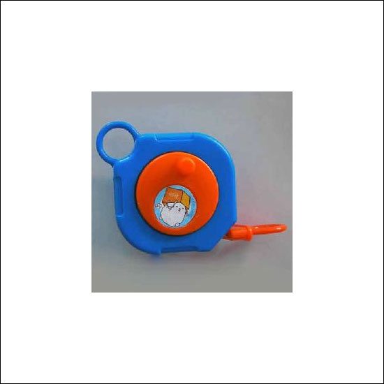 In the middle is a winder for winding the tape measure with a cute graphc.