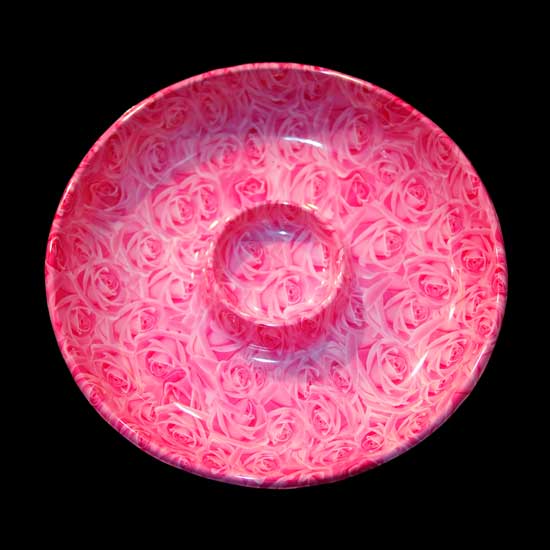 This round-shaped plastic tray features pink rose flower printing on the body. The functional plastic tray is perfect for serving candy and snacks. The quality plastic tray is shatterproof and water resistant.