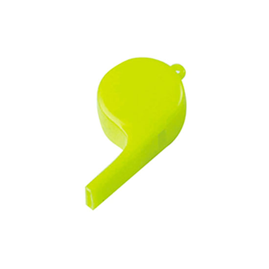 This whistle comes with a neon green finish. Made of durable plastic, this whistle boasts a long service life. A lanyard can be attached to the loop on the top for hanging on the neck.