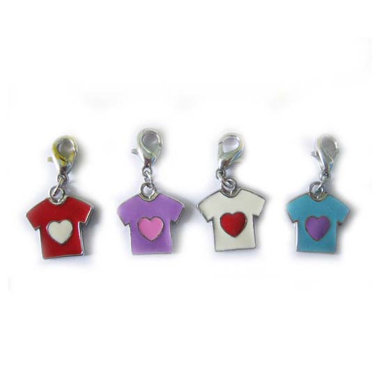 This is a beautiful series of charms designed in a little T-shirt shape. The little tees come with a heart pattern and is plated in sharp colors. A glossy finish is added to make these charms a nice decoration.