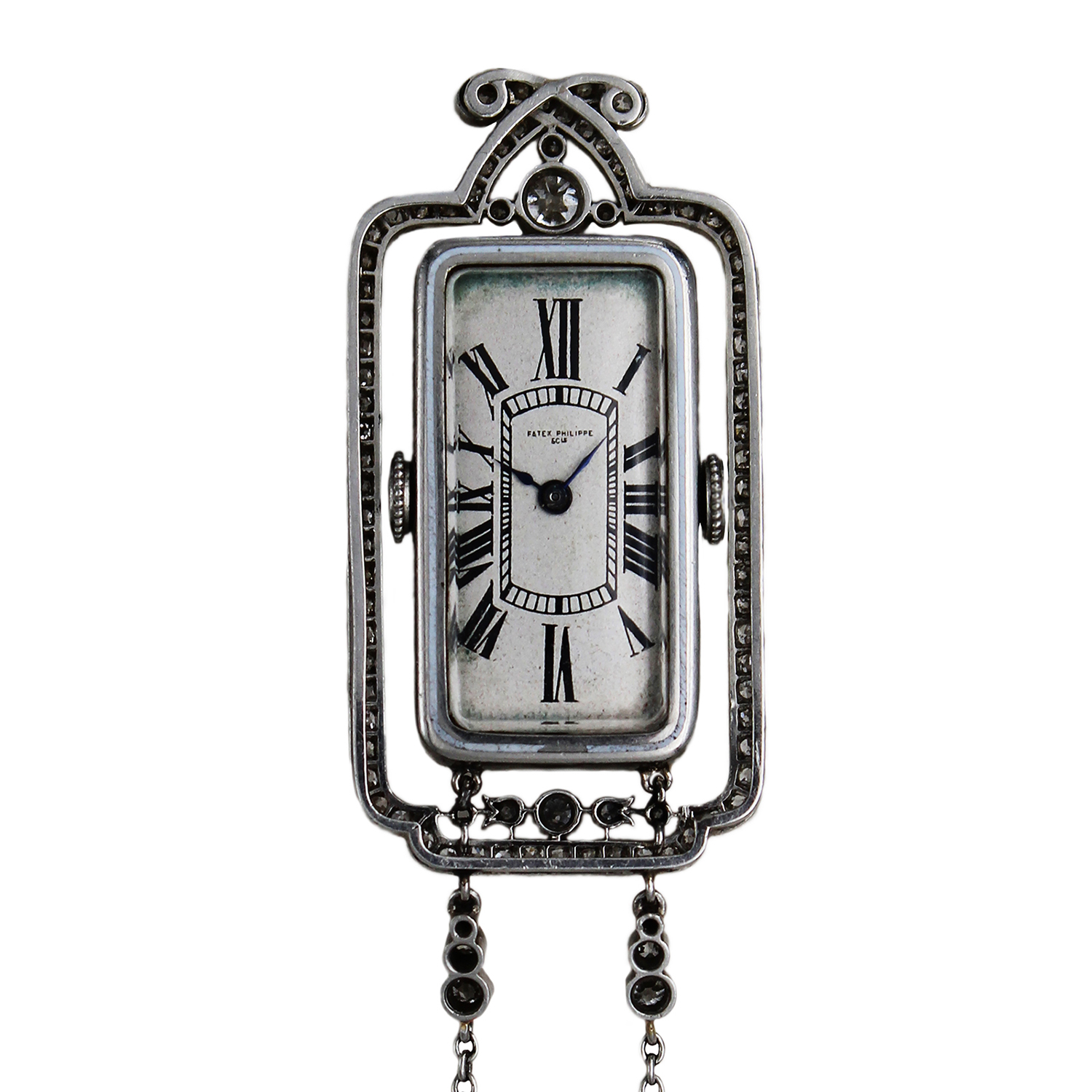 Patek Philippe Platinum, Diamond & Porcelain Pendant Watch & Chain