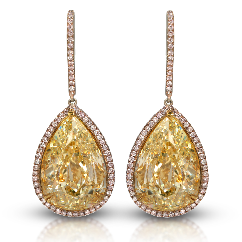 Platinum / 18K 9.6GM yellow diamond earrings - 300RD.PK 1.24ct, 2PS 14.46ct