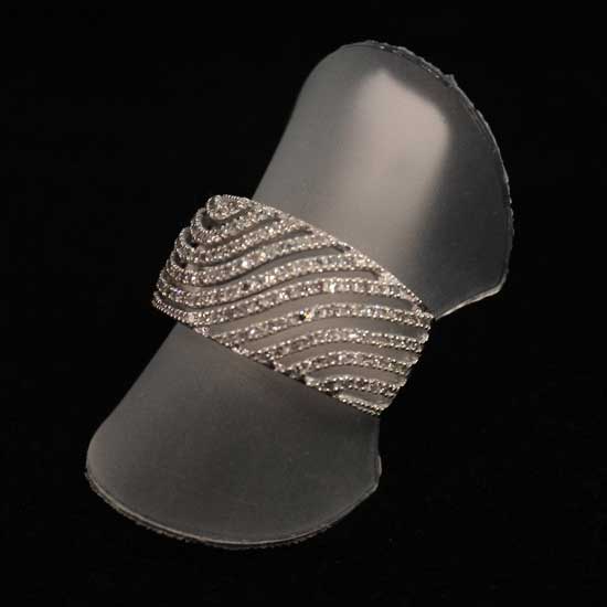 The chunk ladies' platinum ring features wavy patterns with cutout details. The diamond settings give it a glittering touch. Embellish your hands with this charming ring.
