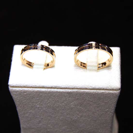 The admirable ring set includes two shimmering rings. Delicately crafted with fine platinum and pink gold, the rings present gorgeous shine to show stunning beauty. A diamond is sculpted on the ladies' ring to deliver a sense of glamor. This precious ring set is a perfect choice of engagement rings.