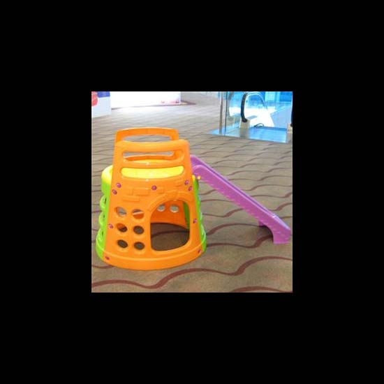 This is a small and brightly coloured standard playground component made from sturdy plastic