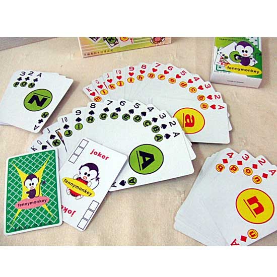 Displayed here is a set of playing cards designed for poker and English spelling games. It is an entertaining and educational tool for memory training and spelling learning. This playing card set is an innovative game for all.
