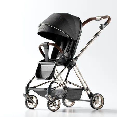 ALL-WHEEL SUSPENSION - The newborn stroller showcases large, sleek wheels with treaded tires and all-wheel suspension to navigate uneven terrain. The front swivel wheels feature the lock function for versatile maneuverability. The rear-linked foot brake secures the stroller with a simple tap.