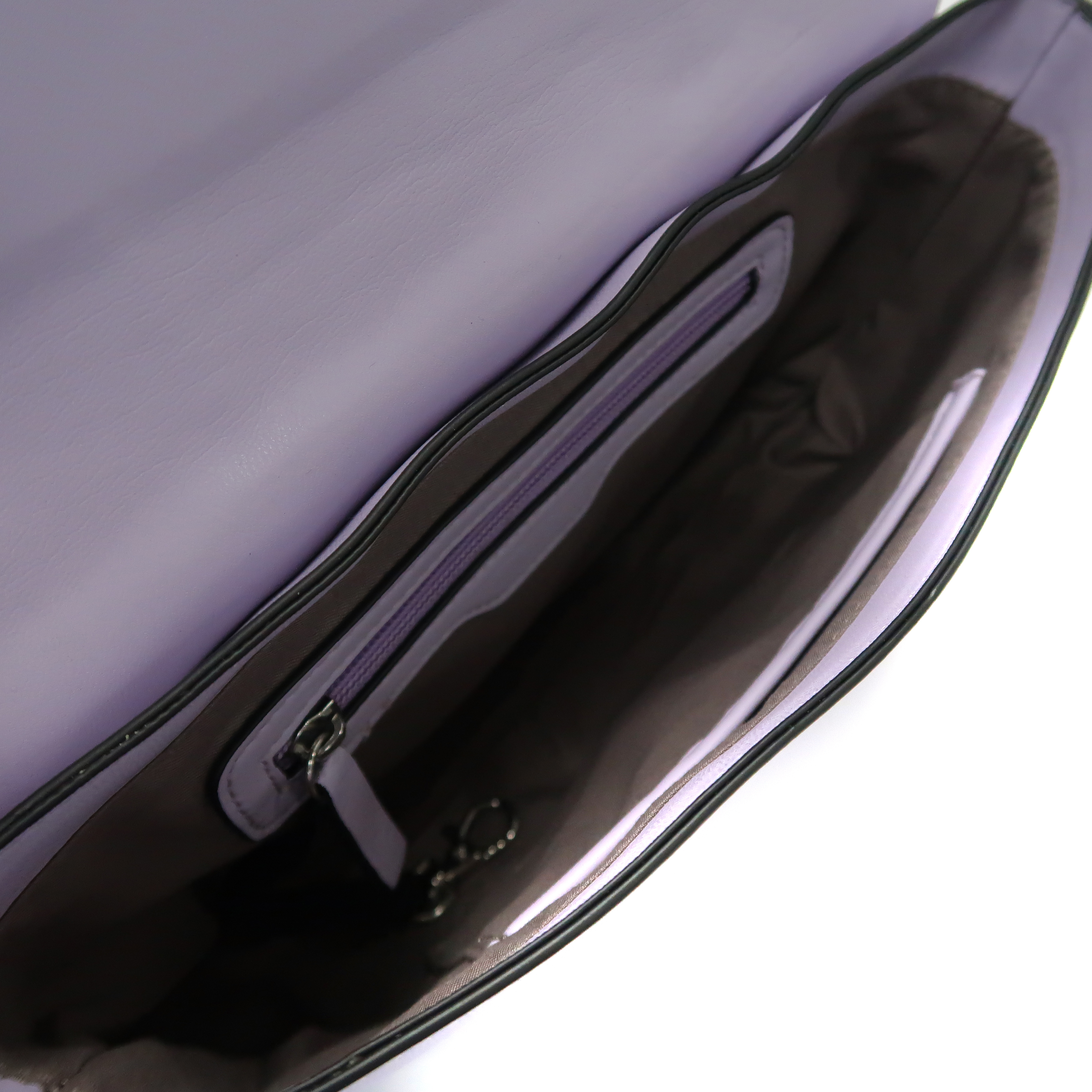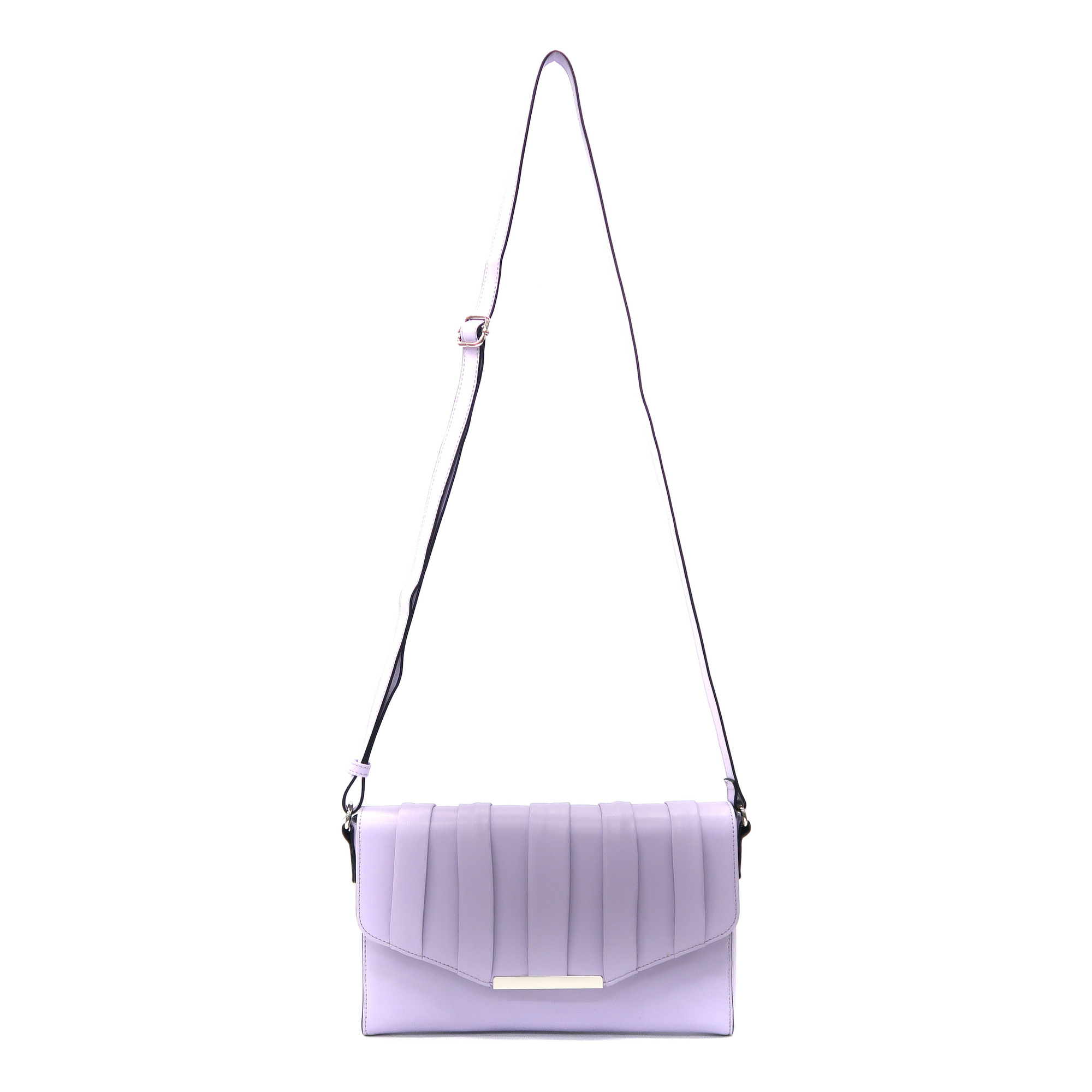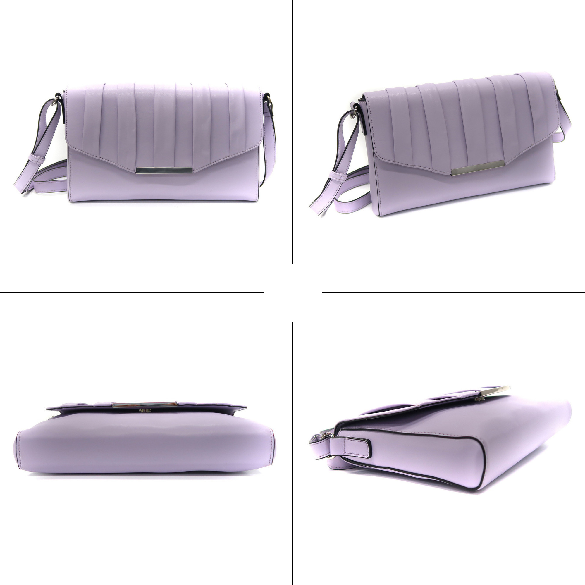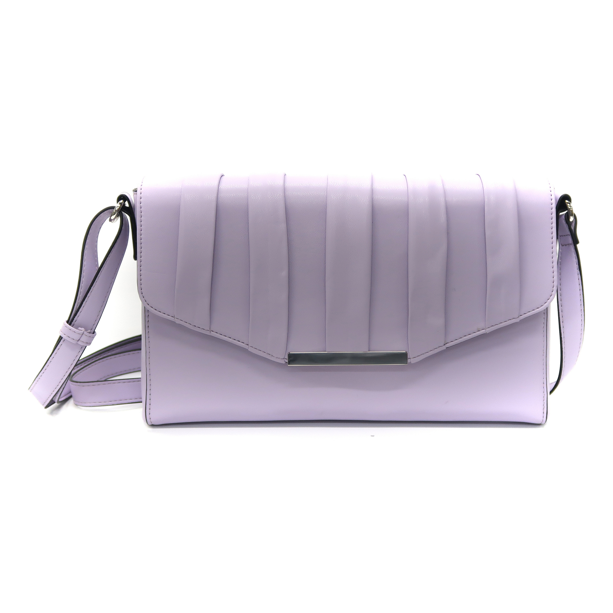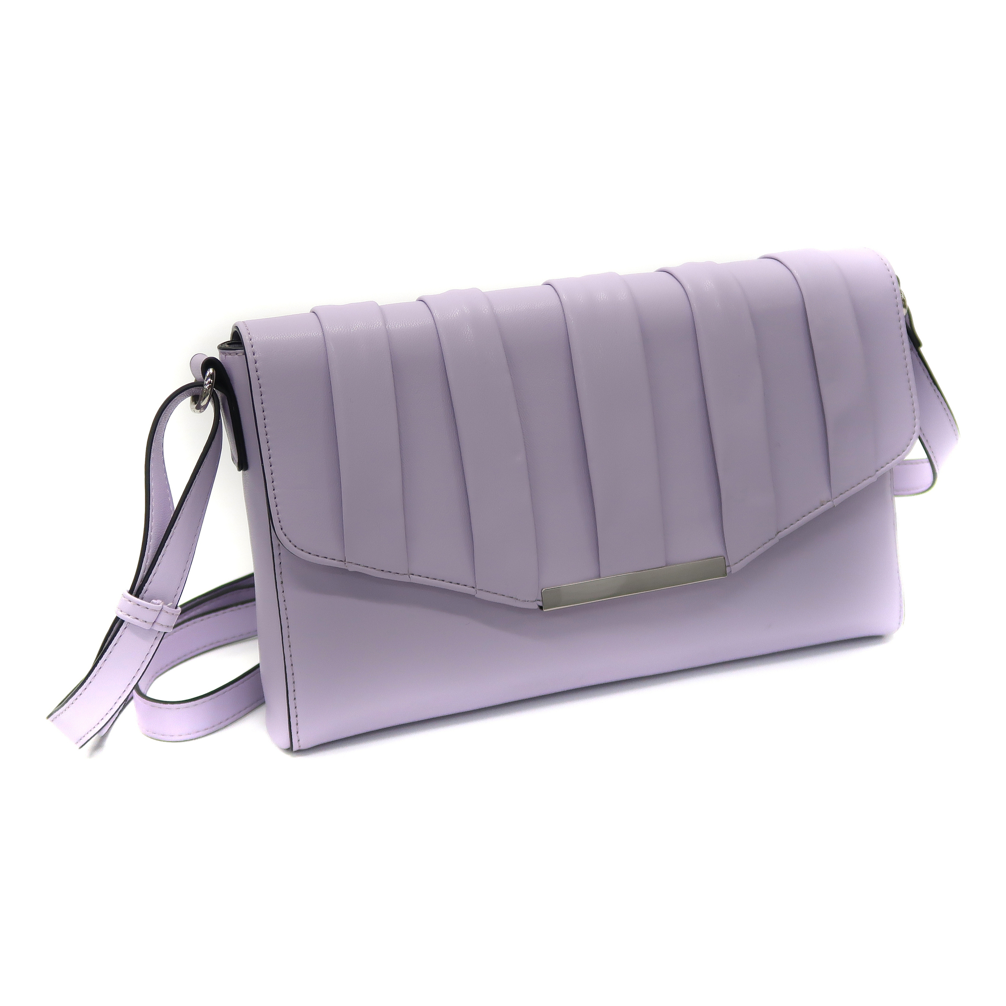 Pleated Imitation Leather Women handbag Crossbody Magnetic snap closure Lilac