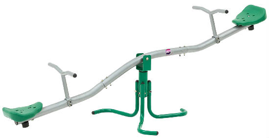 Metal see saw with up and down as well as 360° motion, for even more fun!