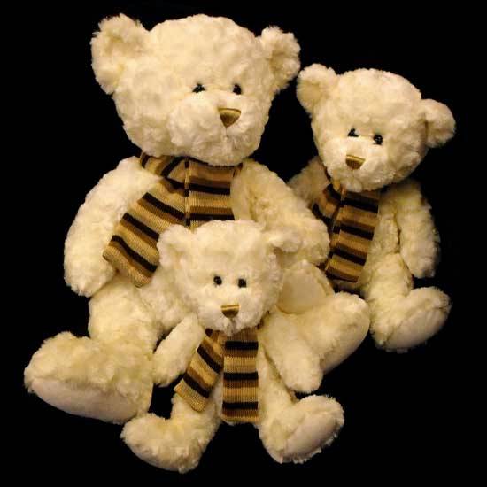 This plush bear has a striped scarf on the neck. This gift plush bear has a soft and non-allergic texture. This plush bear is a suitable sleeping companion for your children.