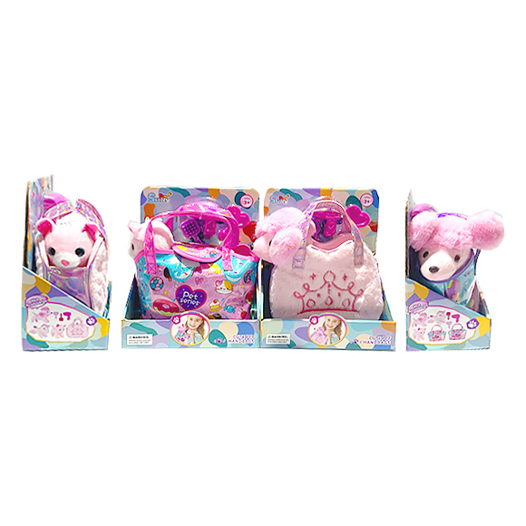 This charming plush toy paired with an adorable handbag offers a unique combination of play and portability, making it an ideal companion for kids when they are playing outdoors. The stuffed toy is crafted from smooth and soft materials, ensuring a cuddly and comforting feel. Boasting adorable design and realistic detailing, this plush dog is also a distinctive and adorable addition to any stuffed animal collection.