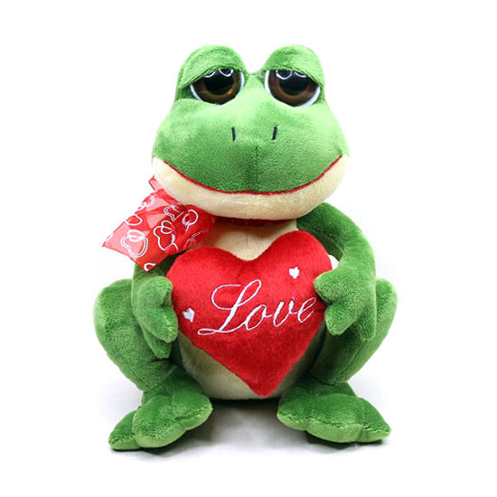This is a toy frog in allover green with a cute look. It comes with a bright red heart on the front and a red scarf. Give your beloved one a surprising birthday gift with this plush toy.