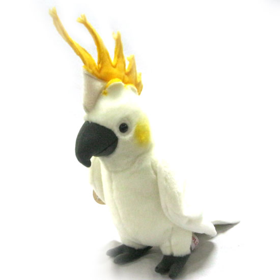 This plush parrot comes with a pair of bright eyes that shine with wisdom. It features a flamboyant yellow crown for exceptional charm. With amazing cuteness, this parrot makes a wonderful addition to your collection of plush toys.