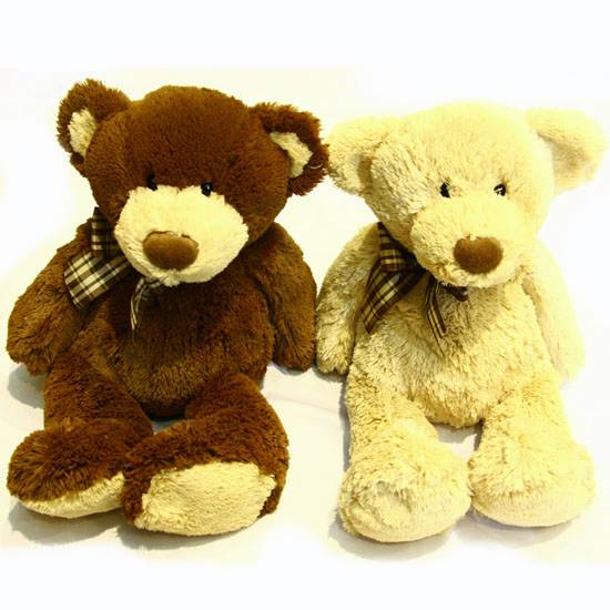 Kids and babies would certainly love these cute teddy bears. They have a lovely face with small eyes and a big nose, and also a ribbon round their neck. Their hair is fluffy and makes them soft and comfortable to hug.