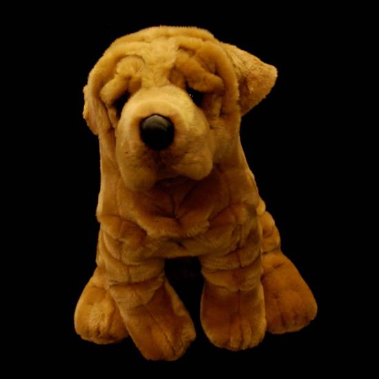 The adorable life-like plush toy flaunts the appearance of a shar-pei dog with wrinkled skin. The polyester fiber offers a comfortable and soft hand touch. It makes a great gift idea for kids.