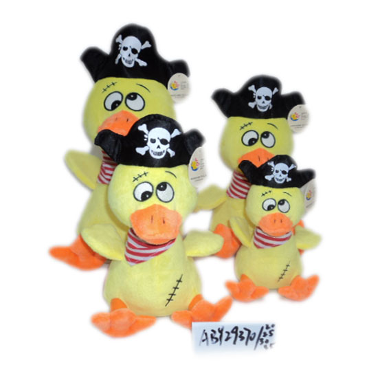 The plush toy is designed as a cute duck. The duck toy provides comfortable hand feel. The black pirate hat makes the plush toy more attractive and lovely.