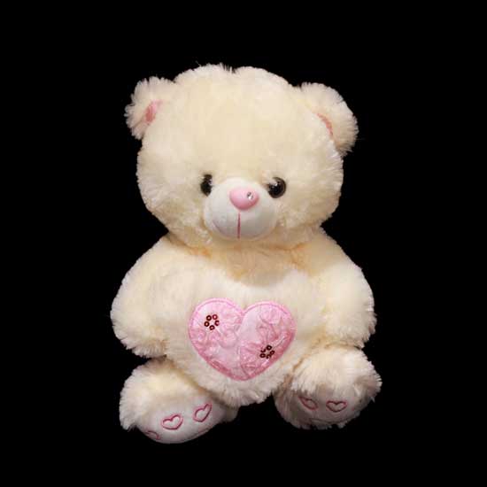 This is a cute bear toy that features an innocent face and a sweetheart ornament. The long soft fabric gives it a soft and fluffy body. This adorable plush toy makes a deluxe gift for your beloved girl.