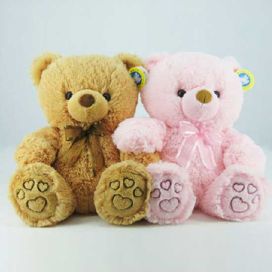 This 13-inch plush toy bear set is a wonderful wedding gift. It comes in brown and pink and is highlighted with a bow at the neck. The heart patterns on the paws exude a loving touch.