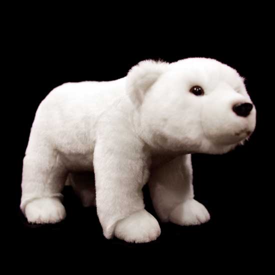 This plush toy in white features a polar bear-like appearance. The toy animal is standing still and looking to the far side aimlessly. The allover plush design offers a soft and comfortable touch.