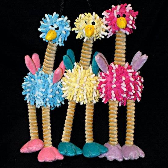 The plush toy ostriches feature colorful design. They are soft and comfortable to cuddle. These plush toy ostriches come in s standing position to make great decoration items.