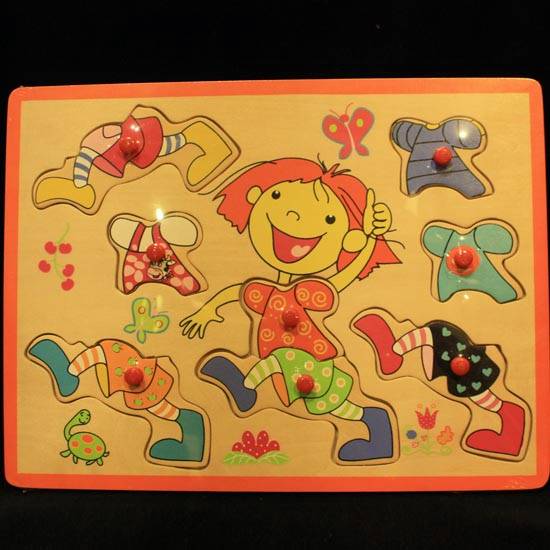 The puzzle features the theme of a girl with changing clothes. It is made of sturdy wooden material that boasts a solid structure to conventional paper puzzles. This puzzle can train the hand-eye coordination of young children.