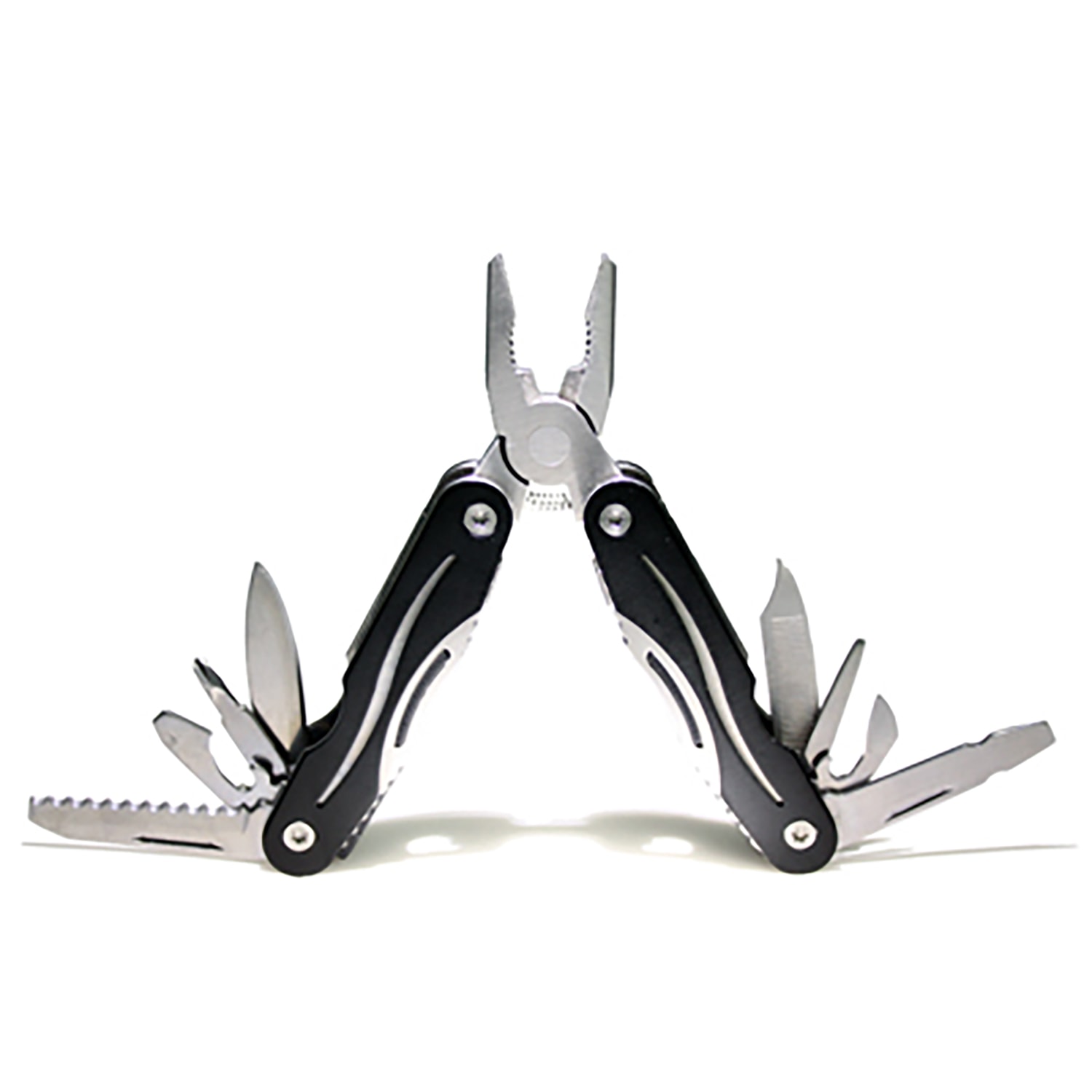 Small multi tool with nylon pouch includes the following features: